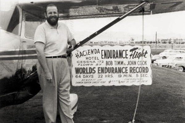 Em 4 de dezembro de 1958, no aeroporto McCarran Field (hoje Harry Reid International Airport) em Las Vegas, Timm e Cook decolaram numa modesta Cessna 172 — apelidada Hacienda — com um objetivo pouco convencional: não pousar por mais de dois meses. Até 7 de fevereiro de 1959, ficaram no ar 64 dias, 22 horas, 19 minutos e 5 segundos — um recorde oficial da Fédération Aéronautique Internationale (FAI) que permanece imbatível.